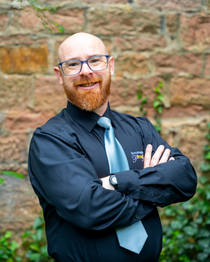 Team Unser Team Hinter unserem Haus steht ein engagiertes Team, das sich mit Erfahrung und Einfühlungsvermögen um alle Belange kümmert. Gemeinsam sorgen wir dafür, dass jede Phase Ihres Abschieds würdevoll und zuverlässig begleitet wird. Anika Blatz Geschäftsführerin Joanna Piazzi Büroleitung / Bestatterin Michael Dietz Bestatter Caroline (Caro) Friedel Bestatterin Benjamin (Benny) Weiß Bestatungsfachkraft Susanne Rosenhauer Buchhaltung / Personal 🕊️Gemeinsam für einen würdevollen Abschied